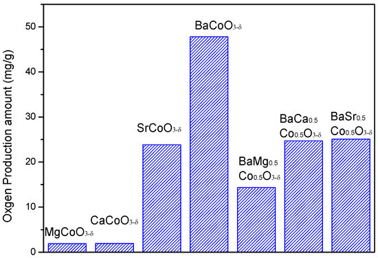 - The results showed that the oxygen desorption amount of A-site substitution was in the order: BaCoO3-δ > BaSrCoO3-δ > BaCaCoO3-δ >SrCoO3-δ > BaMgCoO3-δ > CaCoO3-δ > MgCoO3-δ. The substitution of Ba2+ with Sr2+/Ca2+/Mg2+ reduced the oxygen desorption amount for BaCoO3-δ.