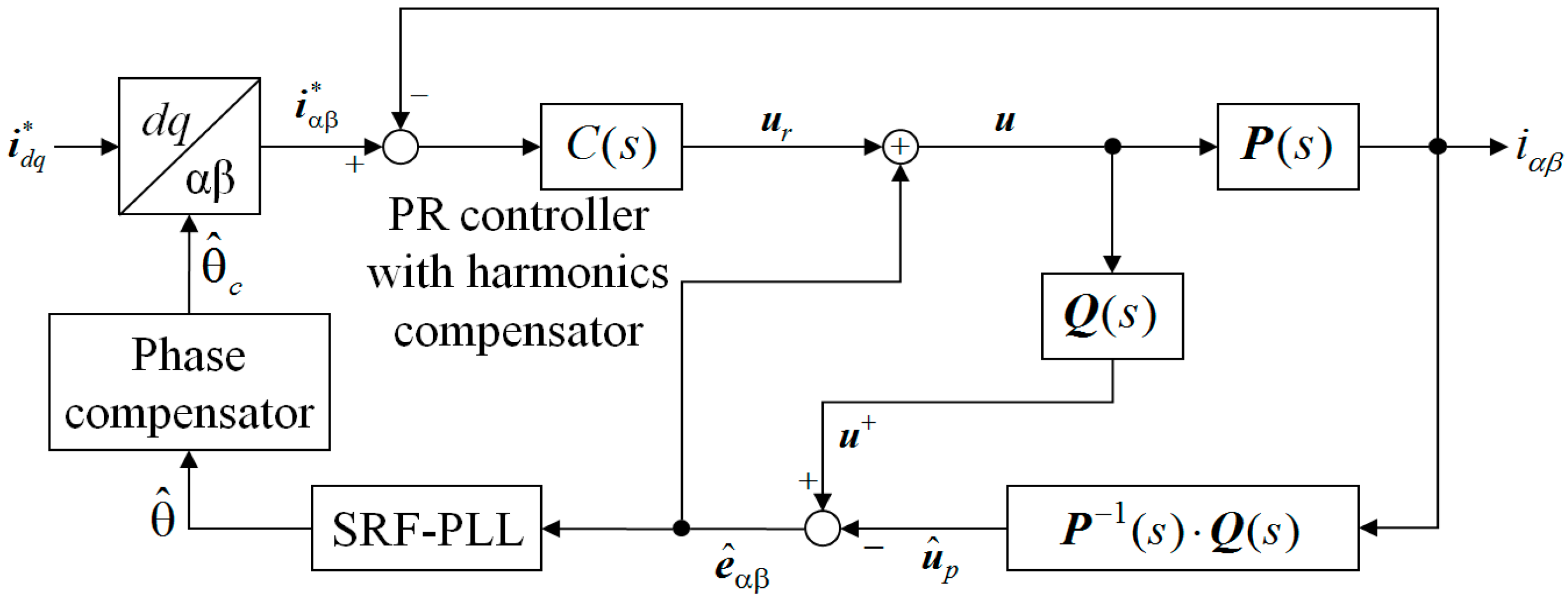 In the stationary reference frame, a PR current controller is expressed as follows:
