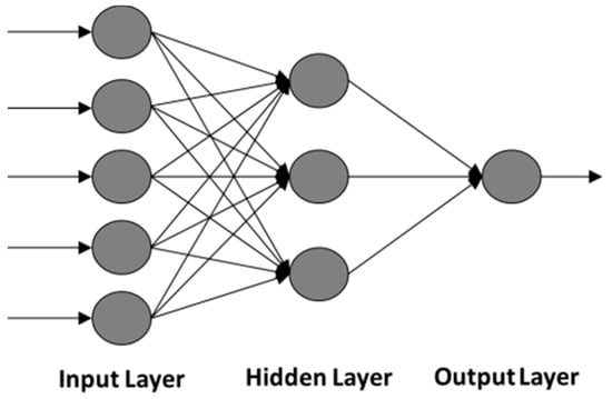 A multilayer perceptron network (MPN) consists of an input layer, one or more hidden layers of computation nodes, and an output layer. Figure 2 shows a typical feed-forward network with one hidden layer consisting of three nodes, five input neurons and one output.