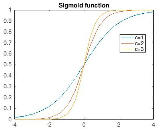 The constant c can be selected arbitrarily and its reciprocal 1/c is called the temperature parameter in stochastic neural networks. The shape of the sigmoid changes according to the value of c, as can be seen in the Figure 3.