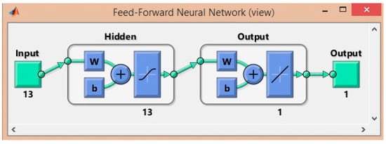 The gradient descent with momentum and adaptive learning rate algorithm can train any network as long as its weight, net input, and transfer functions have derivative functions []. This method uses back-propagation to calculate the derivative of the performance cost function with respect to the weight and bias variables of the network. Each variable is adjusted according to the gradient descent with momentum. For each step of the optimization, if performance decreases the learning rate is increased. This is probably the simplest and most common way to train a network [].