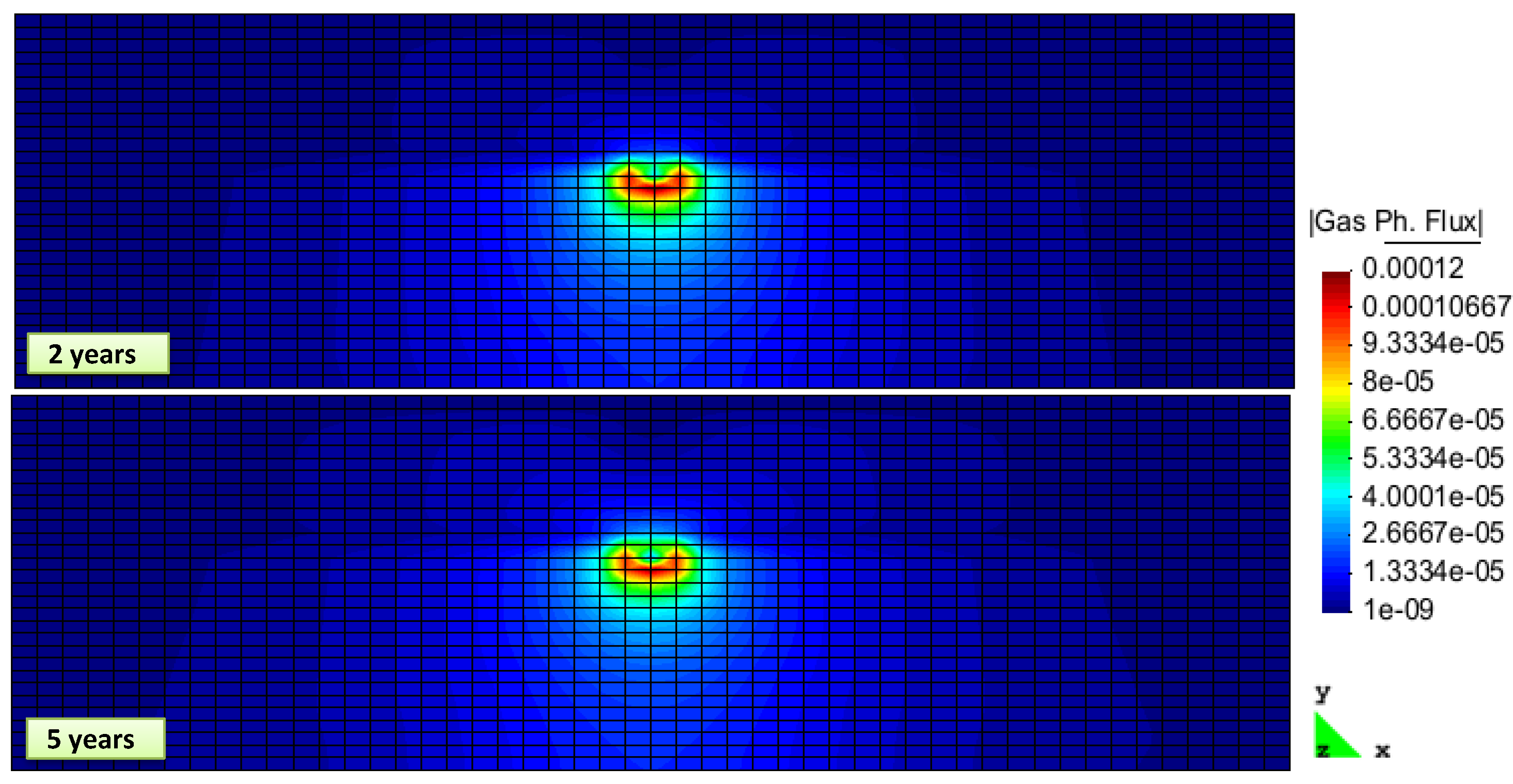 - Chejara, A.; Kvamme, B.; Vafaei, M.T.; Jemai, K. Simulations of long term methane hydrate dissociation by pressure reduction using an extended RetrasoCodeBright simulator. Energy Convers. Manag. 2013, 68, 313–323. [Google Scholar] [CrossRef]