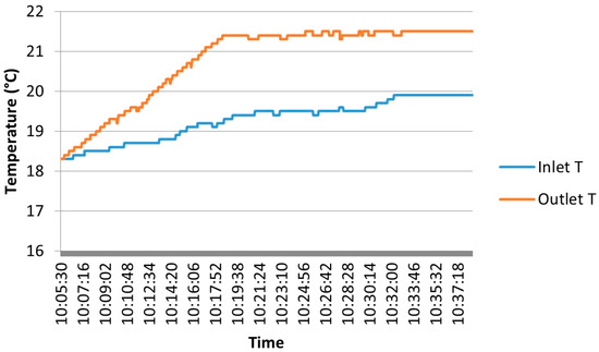 Table 3 includes the tests carried out in laboratory and the results of the thermocouples measurements for each of the configurations analysed and the increment reached in each of them. Times for stabilization of inlet and outlet temperatures were also measured and are equally presented in Table 3. Thermocouples were previously calibrated before use and each of the tests were repeated three times to avoid any kind of measurement error. Temperature increments presented in Table 3 are the average of the three tests made for each assumption with identical conditions.