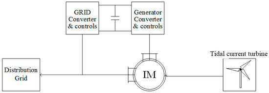 Just like the offshore wind farms, large tidal current turbines are often located in remote offshore areas where weak grids and unbalanced grid voltage conditions are a common problem [1,2]. Many tidal current turbines are connected in a distribution grid where asymmetrical loads, asymmetrical transformer windings or transmission impedance and transient faults (voltage dip) will be the typical sources of the problem, resulting in unbalanced operations [3,4]. The doubly fed induction generator (DFIG), as the most popular form of tidal current energy generation [5], is very sensitive to unbalanced operation of a grid due to its direct coupling to the grid [6,7].