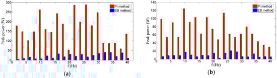 Figure 10 provides the comparison of the low-frequency ripple of the smoothed power between the PI and EB methods during 12–20 s in cases C1 and C2. It can be seen that the smoothed power of the PI method has much more low-frequency ripples than that of the EB method, and this is mainly because the tracking ability of the PI method is insufficient, especially when wind generation changes steeply. In the case C1, the total ripple root mean square (RMS) value of smoothed power by the PI method is 2.5 kW, whereas it decreases to 1.05 kW by the EB method. In the case C2, the whole ripple RMS value of smoothed power by the PI method is 1.6 kW, whereas it is only 0.6 kW for the EB method. Also, it is found that the EB method has a smaller peak ripple value compared to the PI method.