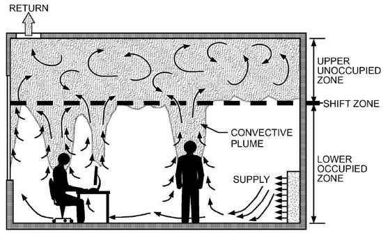 - Yuan, X.; Chen, Q.; Glicksman, L.; Hu, Y.; Yang, X. Measurements and computations of room airflow with displacement ventilation. ASHRAE Trans. 1999, 105, 340–352. [Google Scholar]