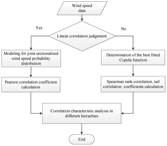 As geographical diversity affects wind speed uncertainty and variability, the correlation characteristics are different in the variety of distances and terrain where wind turbines and wind farms are located. In this section, the proposed method for correlation characteristics analysis in different geographical hierarchies will be introduced based on the model and method introduced in Section 2 and Section 3.
