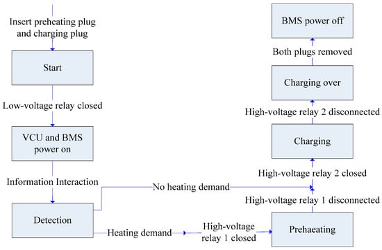 Vehicle-mounted Li-ion power batteries are the only energy supply system of electric vehicles (EVs), with limited electricity stored inside. Unfortunately, the battery performance is pretty susceptible to the ambient temperature. Under extreme temperature conditions, the energy efficiency of a battery could be rather low. In addition, battery degradation is accelerated at extremely low temperatures. These factors not only greatly shorten the driving range of vehicles, but also cause great damage to batteries [,]. In other words, whether the working temperature of battery is appropriate concerns not only the safety of an EV, but also the efficiency and life of the battery. Unfortunately, conventional battery thermal management systems (BTMSs) generally focus on how to cool batteries at high temperatures. Existing research on preheating batteries at low temperatures is mainly confined to heating battery up to 0 °C before battery charging and vehicle operation, which just meets the basic requirements [,,,]. To the authors’ knowledge, few published papers have illustrated: (1) what the preheating target temperature should be; (2) how to implement the preheating system on a real EV. Therefore, it is crucial to study battery preheating methods from the perspective of energy utilization, with the aim of reducing total vehicle operation cost.