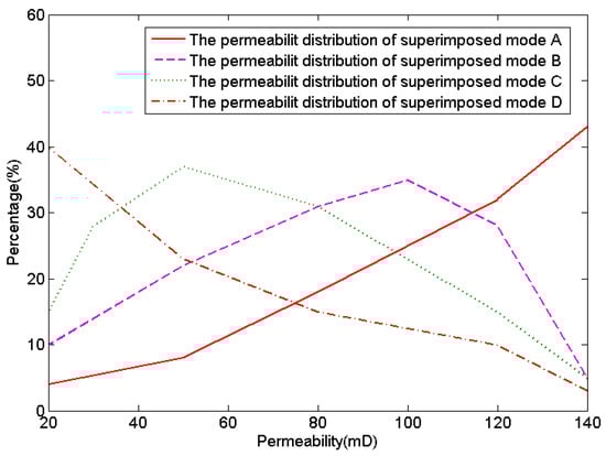 Figure 2 is the permeability distribution of four kinds of superimposed mode. We can conclude that the distribution of the superimposed modes A and D is near linear, and the distribution of the superimposed modes B and C tend toward a normal distribution. Thus, the superimposed modes B and C are more heterogeneous than the superimposed modes A and D [17].
