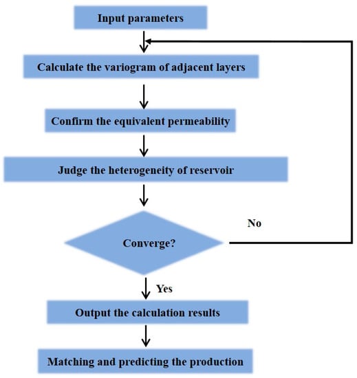 Figure 3 is the simulation procedure. We can see the whole simulation process clearly through the flowchart. Firstly, the formation parameters are input into the model, then the variogram value of the whole reservoir is calculated. By comparing the parameters of well logging and seismic data, the error analysis is carried out. Then the optimal equivalent permeability is obtained through repeated calculation. Finally, the optimal model is used in the fitting and prediction. Table 2 is the parameter list for simulations.