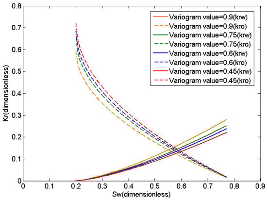Relative permeability with different variogram values.