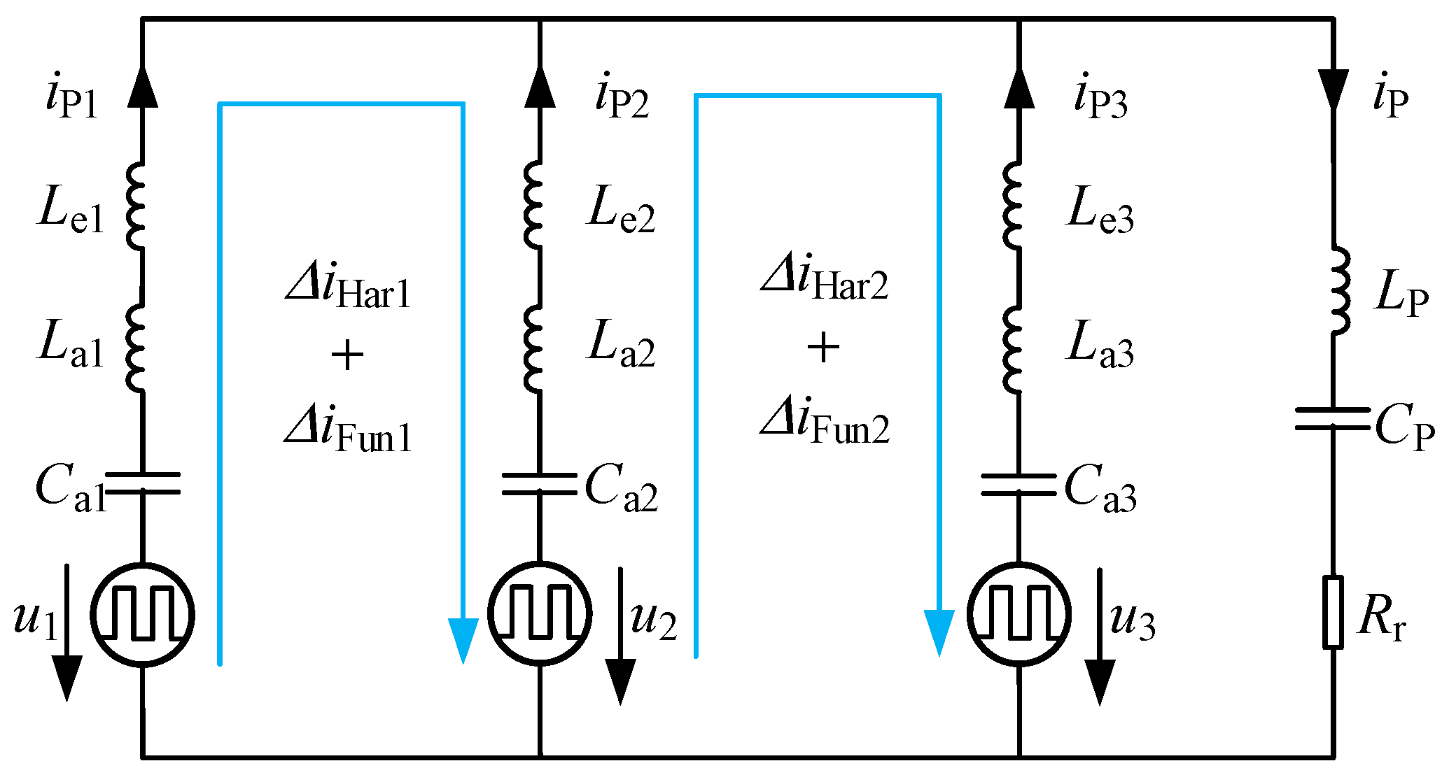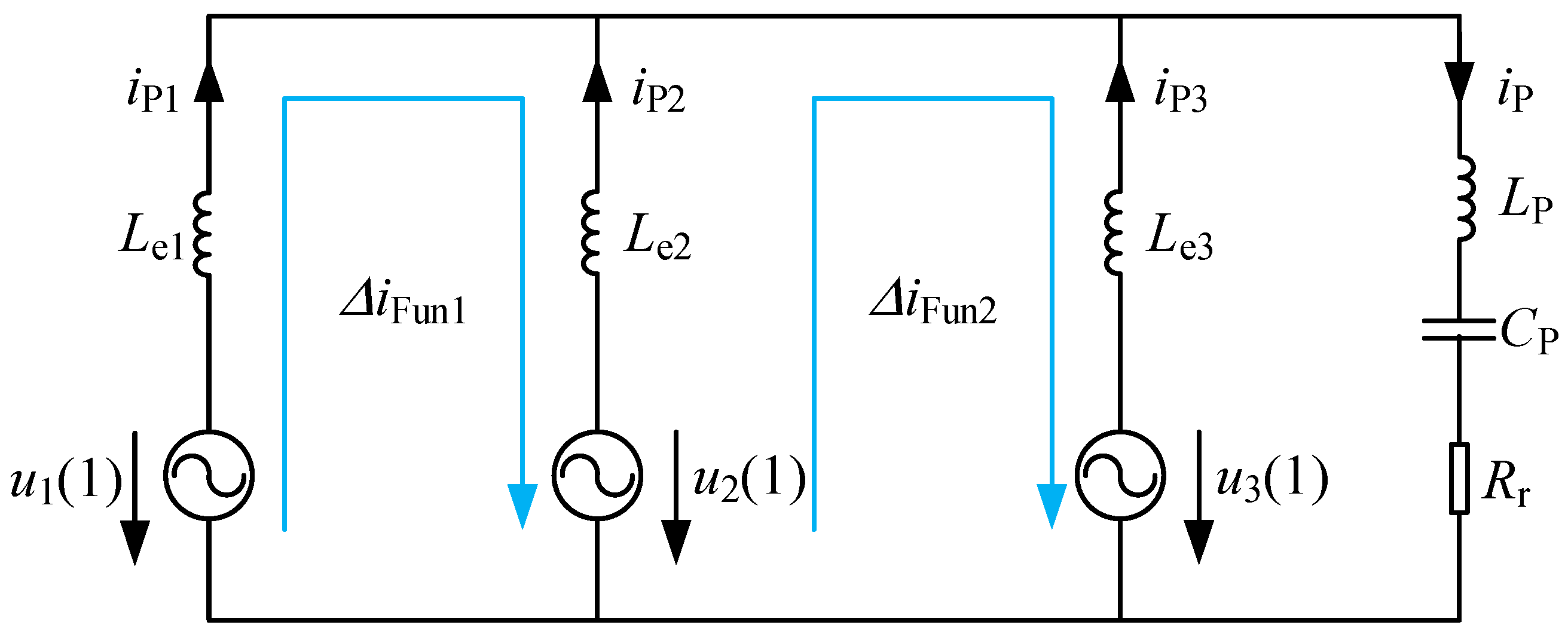 It can be concluded from Equation (9) that when , the circulating currents exist, , .