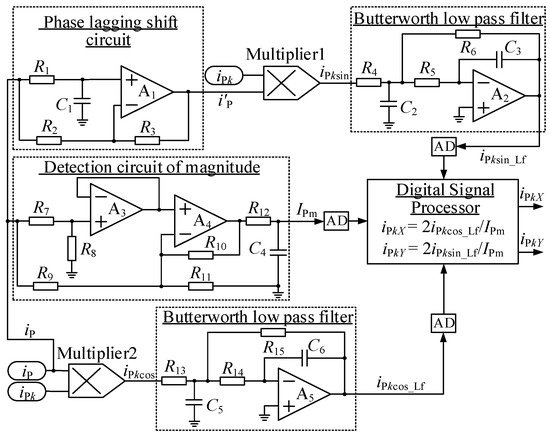 where is the magnitude of the primary coil current. By employing a phase lagging shift circuit, the orthogonal signal can be generated from the reference current iP: