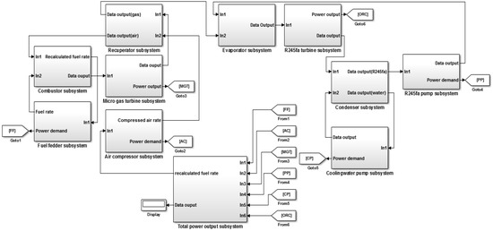 Figure 2 shows the Matlab/Simulink blocks used for performance analysis of the system. The outputs of the block for the MGT provide the mass flow rate and the outlet temperature. The obtained work inputs required by the MGT are used as inputs for the ORC system. The thermophysical properties were calculated using REFPROP 9.1.