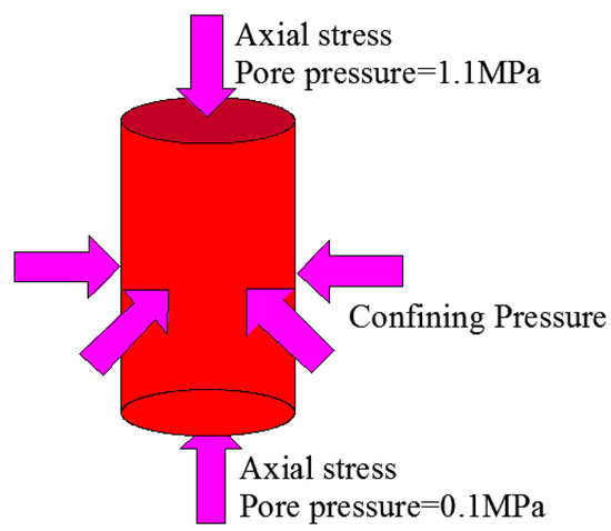 The experimental scheme is determined according to the stress state of the wellbore during UBD introduced here. During UBD, considering the gas flowing along the radial direction, the stress state of a cylindrical micro-unit of the well wall (Figure 2) can be expressed as [20]: