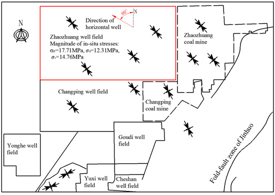 In situ stress distribution map of the Zhaozhuang well field (modified after [24] with permission from Kang et al., 2009).