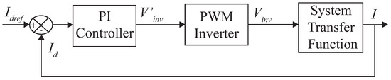 The control system is mainly based on a fast inner loop controlling the AC current. The inner current control loop can be implemented in the d-q frame using the basic relationship for the system model. The inner current control block is presented in Figure 5. Inside the PI controller block, there are two PI regulators, for the d and q axis current, respectively. After comparison, these PI controllers transform the error between the d and q current components into voltage magnitudes. The representative equation for the PI controller is: