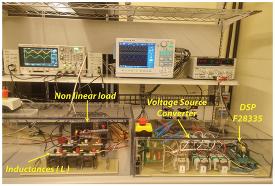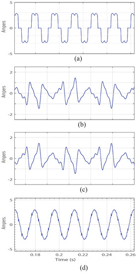 Harmonic currents produced by power electronic devices and nonlinear loads reduce power quality, leading to diverse problems like increases in power losses, excessive heating in rotating machinery, electromagnetic interference in communication systems, low power factor and failures in electronic equipment [1,2,3,4,5]. There are several alternatives in the industry to improve power quality, each one with their own advantages, disadvantages and field of application, e.g., transient suppressors, line voltage regulators, uninterruptible power supply and active and hybrid power filters [6], among others. APFs are used extensively in three-phase systems to reduce harmonic pollution and improve power quality. These devices can be considered as controlled current sources, which inject harmonic currents opposite to the harmonic currents generated by power electronic devices and non-linear loads, reducing effectively distortion in the current and voltage waveforms [7]. A general description of the APFs’ design can be found in [8,9].