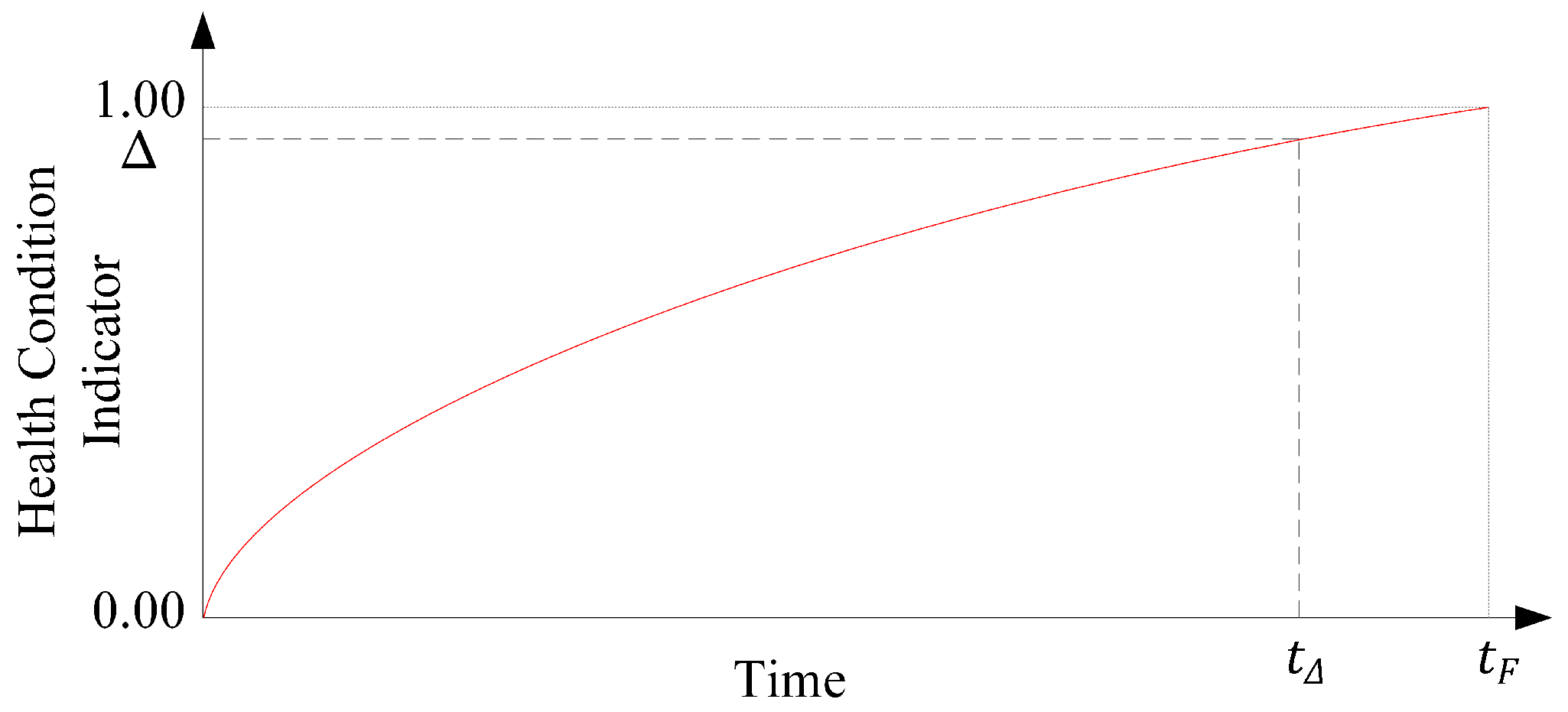 In order to demonstrate the possibility of the integration of condition monitoring systems with the maintenance planning, a simple anomaly model is defined as in Figure 5. The anomaly model receives the health condition of the WT (e.g., from a SCADA system) and updates the health condition indicator that displays the status of the WT. In this example, 0.00 means the WT is in a good operational state, and 1.00 means the WT is in an anomaly or failure state. Due to the high costs of anomaly and failure conditions, the OWF operator would like to prevent any WT from reaching the failure state. Therefore, whenever the health condition indicator reaches a predefined threshold, Δ (which can be set based on experience), it is assumed that the WT must undergo maintenance by the time . Otherwise, the WT may face an anomaly or a failure. Interested readers can refer to [12,14,37] for detailed analyses on the developments of such condition monitoring systems and anomaly models, as a further look into this area is out of the scope of this paper.