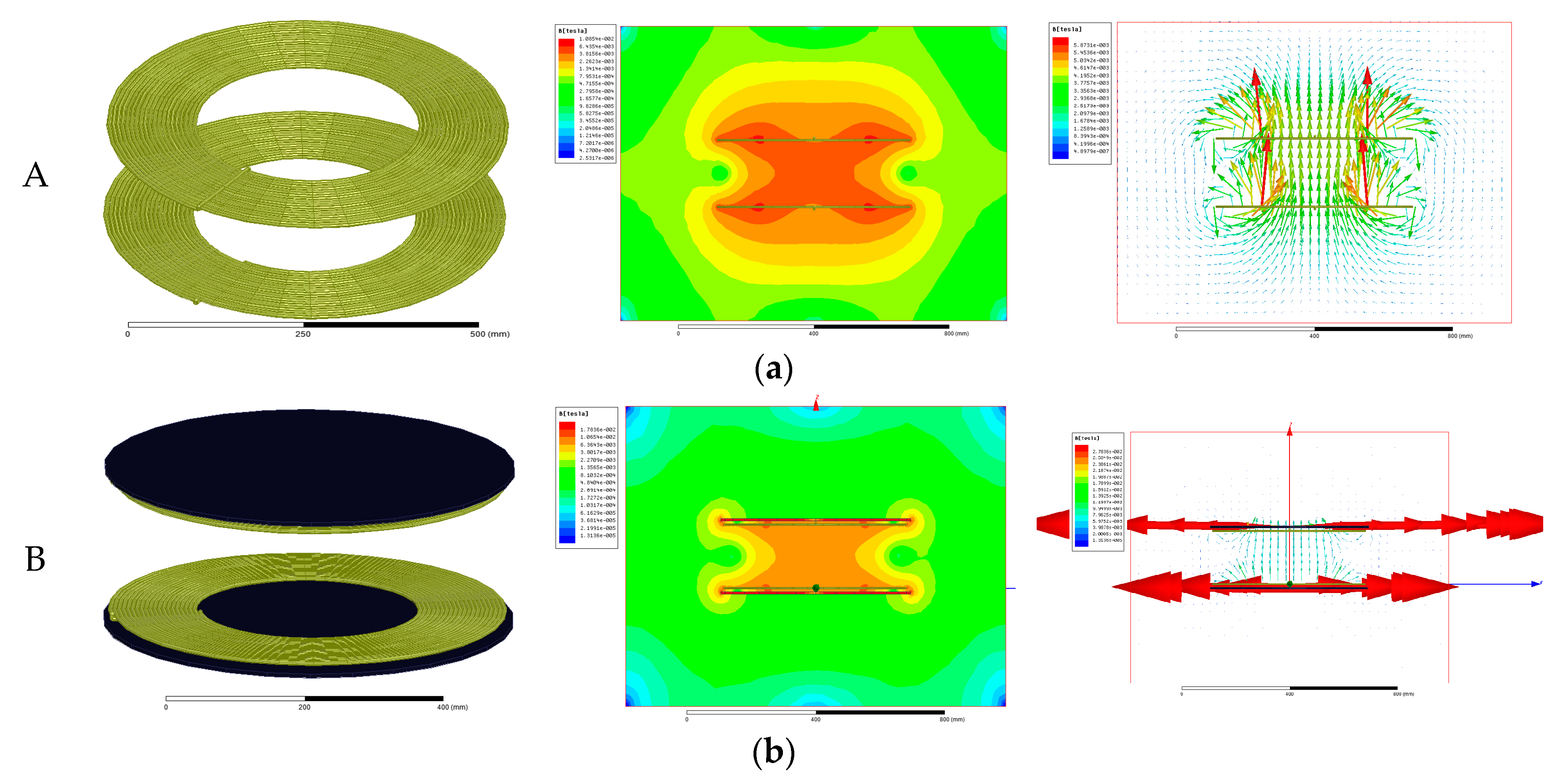 - Budhia, M.; Boys, J.T.; Covic, G.; Huang, C.-Y. Development of a Single-Sided Flux Magnetic Coupler for Electric Vehicle IPT Charging Systems. IEEE Trans. Ind. Electron. 2013, 60, 318–328. [Google Scholar] [CrossRef]