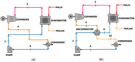 (a) ORC basic scheme and (b) recuperative ORC architecture.