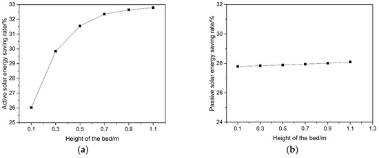 Influence of the bed height on solar residence energy saving rate on (a) Active solar energy saving rate; (b) Passive solar energy saving rate.