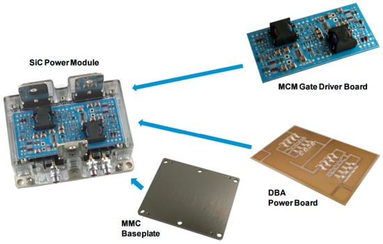 The high temperature half-bridge SiC module [26]. DBA: direct bonded aluminum.
