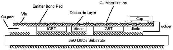 - Liu, X.; Jing, X.; Lu, G.-Q. Chip-scale packaging of power devices and its application in integrated power electronics modules. IEEE Trans. Adv. Packag. 2001, 24, 206–215. [Google Scholar]