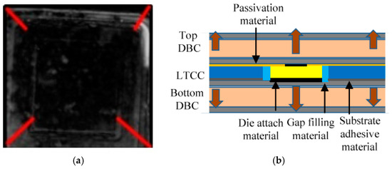 - Seal, S.; Glover, M.D.; Mantooth, H.A. Flip-chip bonded SiC power devices on a low temperature co-fired ceramic (LTCC) substrate for next generation power modules. In Proceedings of the IMAPS International Conference on High Temperature Electronics (HiTEC), Albuquerque, NM, USA, 10–12 May 2016; pp. 159–168.