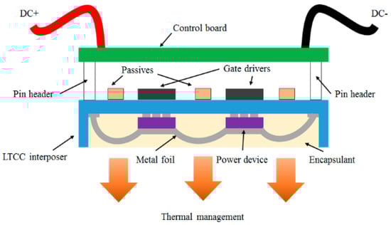 - Seal, S.; Glover, M.D.; Mantooth, H.A. The design and evaluation of an integrated wire-bondless power module (IWPM) using low temperature co-fired ceramic interposer. In Proceedings of the IMAPS/ACerS 12th International Conference and Exhibition on Ceramic Interconnect and Ceramic Microsystems Technologies (CICMT), Denver, CO, USA, 19–21 April 2016; pp. 65–72.