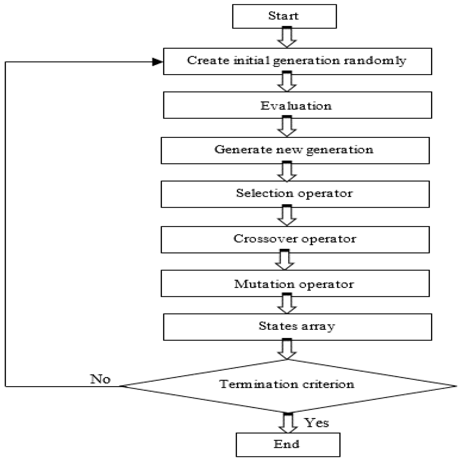 The flowchart of the genetic algorithm.