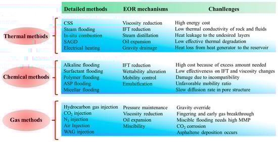 As the production rates of existing fields are declining and the frequency of new exploration has become greatly lower in the last decades, the significance of EOR techniques is highly understood by oil companies and authorities. It is well known that there are three major categories of available EOR technologies (Figure 1) [4,5,6,7,8,9].