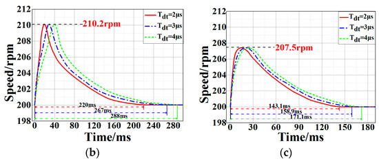 Furthermore, the detailed experimental step response results of speed under different switching frequencies and dead times, are summarized in Table 4. The settling time extends as the dead time increases and the switching frequency declines, which means the fast response performance of the drive system deteriorates.