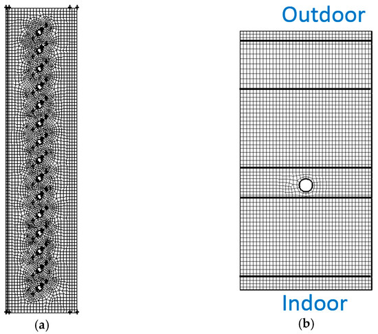 Mesh configurations: (a) Pipe-embedded window and (b) Pipe-embedded wall.