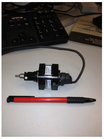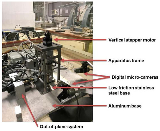 Technical details of the apparatus and the major set of calibrations have been described in [10] with additional modifications of the mechanical and electronic parts described in [24]. An important component of the apparatus is the system of the three identical linear micro-stepper motors which are used to conduct the tests and control the vertical load. An image of one of the stepper motors is given in Figure 7. Note that these motors have a micro-step size equal to 0.095 microns, a travel range of 16 mm and a maximum continuous thrust of 240 N. Further technical details of the micro-stepper motors may be found in Senetakis and Coop [10]. The apparatus is composed of high resolution load cells of a load capacity equal to 100 N [10] and non-contact type displacement sensors [8,24] which allow a resolution of the displacements of the order of 0.01 micron.