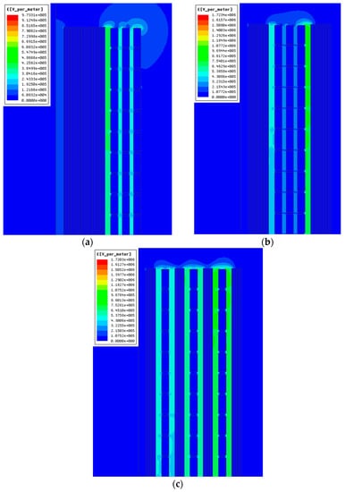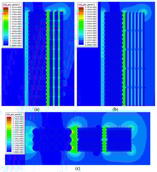 Electric field distribution for different windings: (a) N-4; (b) N-5; (c) N-6.