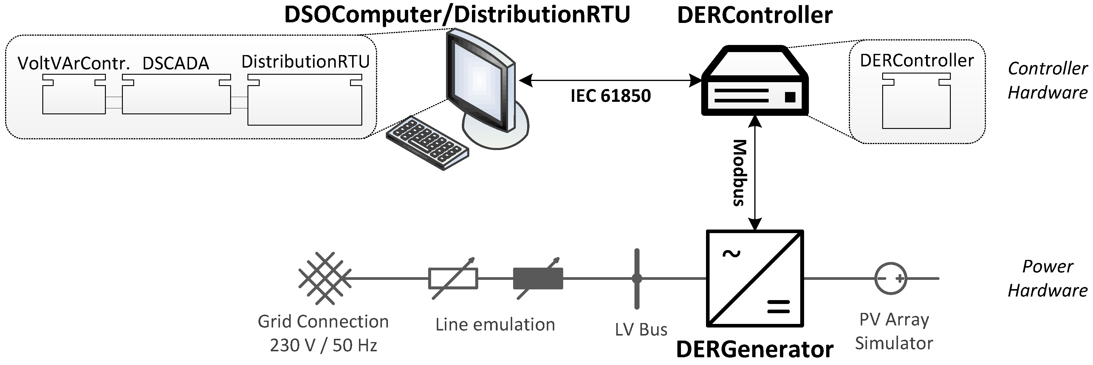 - International Electrotechnical Commission. IEC/TR 61850-90-7—Communication Networks and Systems for Power Utility Automation—Part 90-7: Object Models for Power Converters in Distributed Energy Resources (DER) Systems; International Electrotechnical Commission (IEC): Geneva, Switzerland, 2013. [Google Scholar]