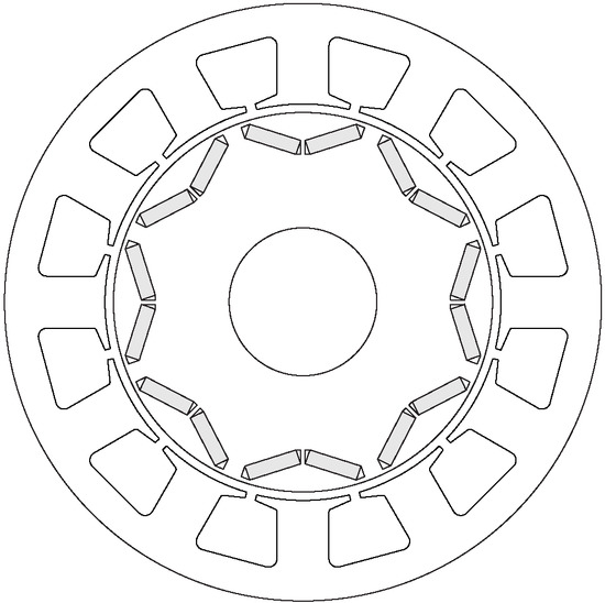 - Bianchi, N.; Bolognani, S.; Dai Pré, M.; Grezzani, G. Design considerations for fractional-slot winding configurations of synchronous machines. IEEE Trans. Ind. Appl. 2006, 42, 997–1006. [Google Scholar] [CrossRef]