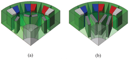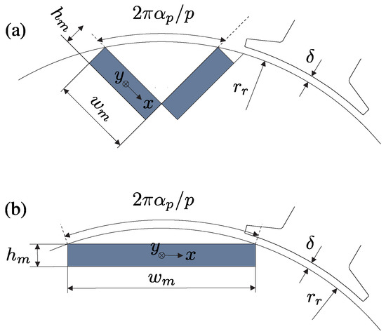 - Yamazaki, K.; Fukushima, Y. Effect of eddy-current loss reduction by magnet segmentation in synchronous motors with concentrated windings. IEEE Trans. Energy Convers. 2011, 47, 779–788. [Google Scholar] [CrossRef]