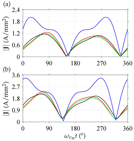 - Bianchi, N.; Fornasiero, E. Index of rotor losses in three-phase fractional-slot permanent magnet machines. IET Electr. Power Appl. 2009, 3, 381–388. [Google Scholar] [CrossRef]