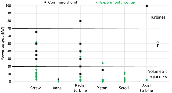 - The literature lacks experimental data of ORC systems in the power range of 10–100 kW, which are required to facilitate the diffusion of the ORC technology in the small-scale power range.