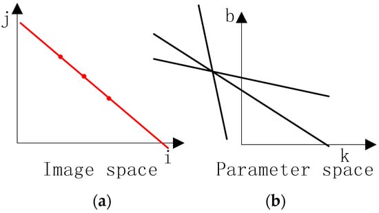 Thus, a point in the image space corresponds to a straight line in the parameter space, and points collinear in the image space intersect at the same point in the parameter space, as shown in Figure 10.