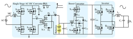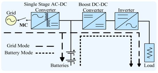 Uninterruptible power supplies (UPSs) deliver clean, conditioned, and reliable power to critical loads such as communication systems, network servers, medical equipment, etc. [1]. Typically, the UPS provides unity power factor, high efficiency, high reliability, low cost, and continuous power supply, irrespective of the grid conditions [2,3,4].