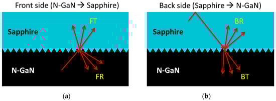 Bidirectional transmission (FT, BT) and reflection (FR, BR) in two opposite orientations: (a) Light incident from N-GaN into sapphire; (b) Light reflect from sapphire and into N-GaN.