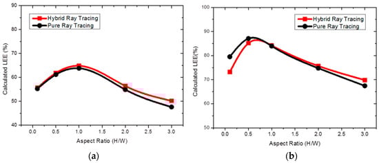Hybrid vs. pure ray-tracing method for microscale structures: (a) bare LED chip and (b) packaged LED.