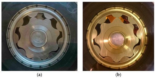 The trochoidal gear set, shown in Figure 6, has been manufactured by AMES from blanks of sintered metal material because it is believed to be the most appropriate technology for these types of components. The FD-05N2C-400 was chosen as the powder metallurgical material, following requirements and specifications of the standard ISO 5755:2012, owing to its combination of hardness (180 HV5) and mechanical strength (590 MPa).