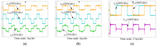 Figure 6 shows the key waveforms of the proposed converter at Vin = 230 V, Io = 5 A. It can be noted that the experimental waveforms coincide well with the theoretical analysis described in Figure 3.