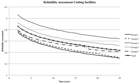 Annual reliability index for different groups based on cutting facilities categories (sand casting).