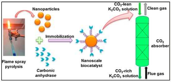 - Zhang, S.H.; Lu, H.; Lu, Y.Q. Enhanced stability and chemical resistance of a new nanoscale biocatalyst for accelerating CO2 absorption into a carbonate solution. Environ. Sci. Technol. 2013, 47, 13882–13888. [Google Scholar] [CrossRef] [PubMed]