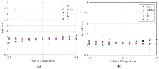Impact of the J–A parameters on (a) the first crest; (b) the second crest.